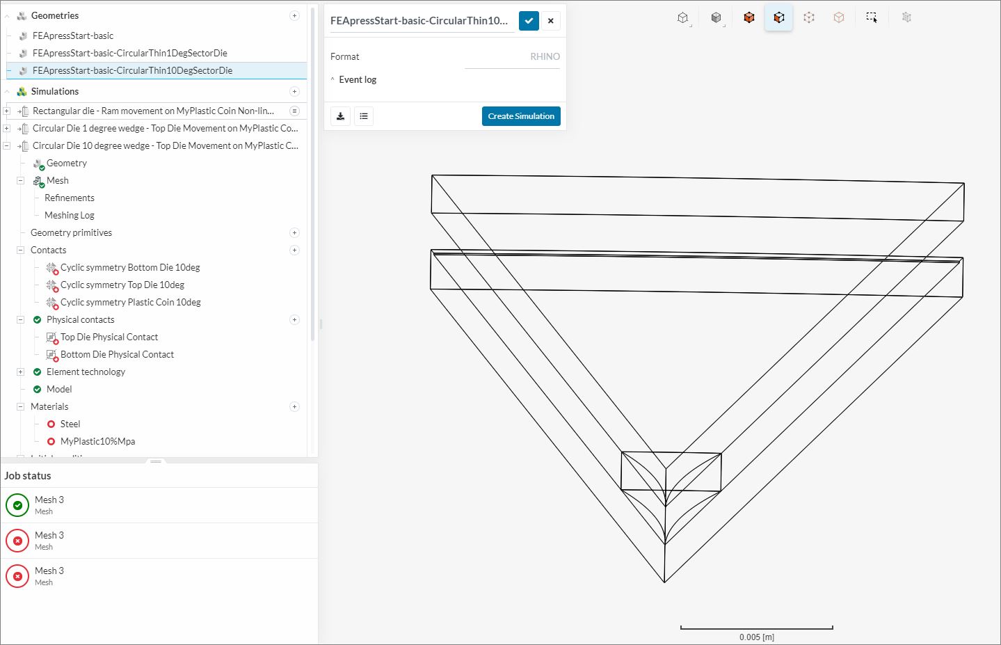 And the geometry shows as bent in SimScale UX , but different faces are bent: