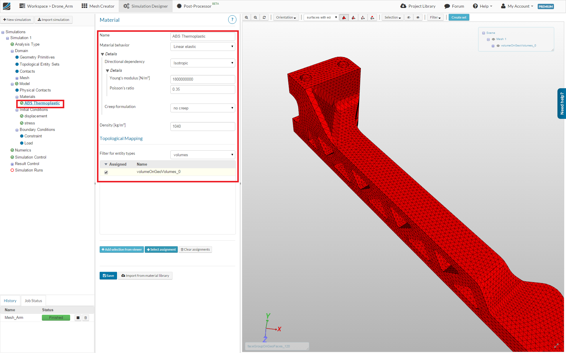 Ordne nun das Material dem Arm der Drone zu (volumeOnGeoVolumes_0)