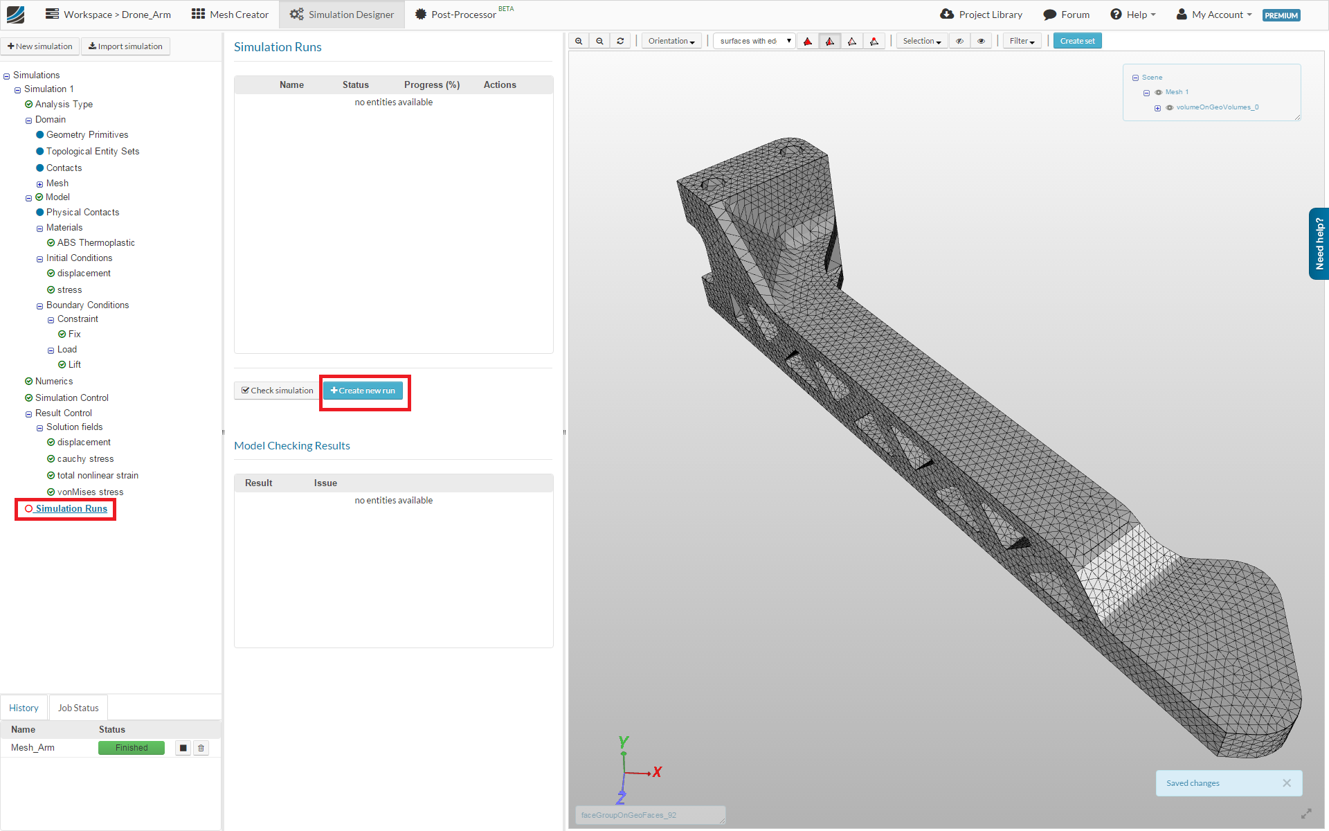 Klicke jetzt auf das Simulation Run Element im *Project tree und klicke anschließend auf den Create new run Button in dem mittleren Menü. Dadurch wird eine Momentaufnahme der Simulationseinstellung erstellt.