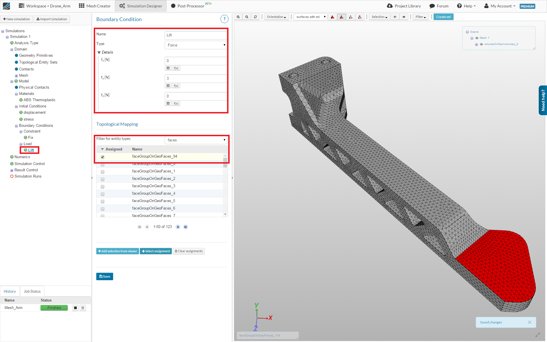 In diesem Tutorial möchten wir die Verformung des Armes für unterschiedliche Auftriebskräfte untersuchen. Du musst den Wert für fy daher anpassen und verschiedene Simulation aufsetzen.