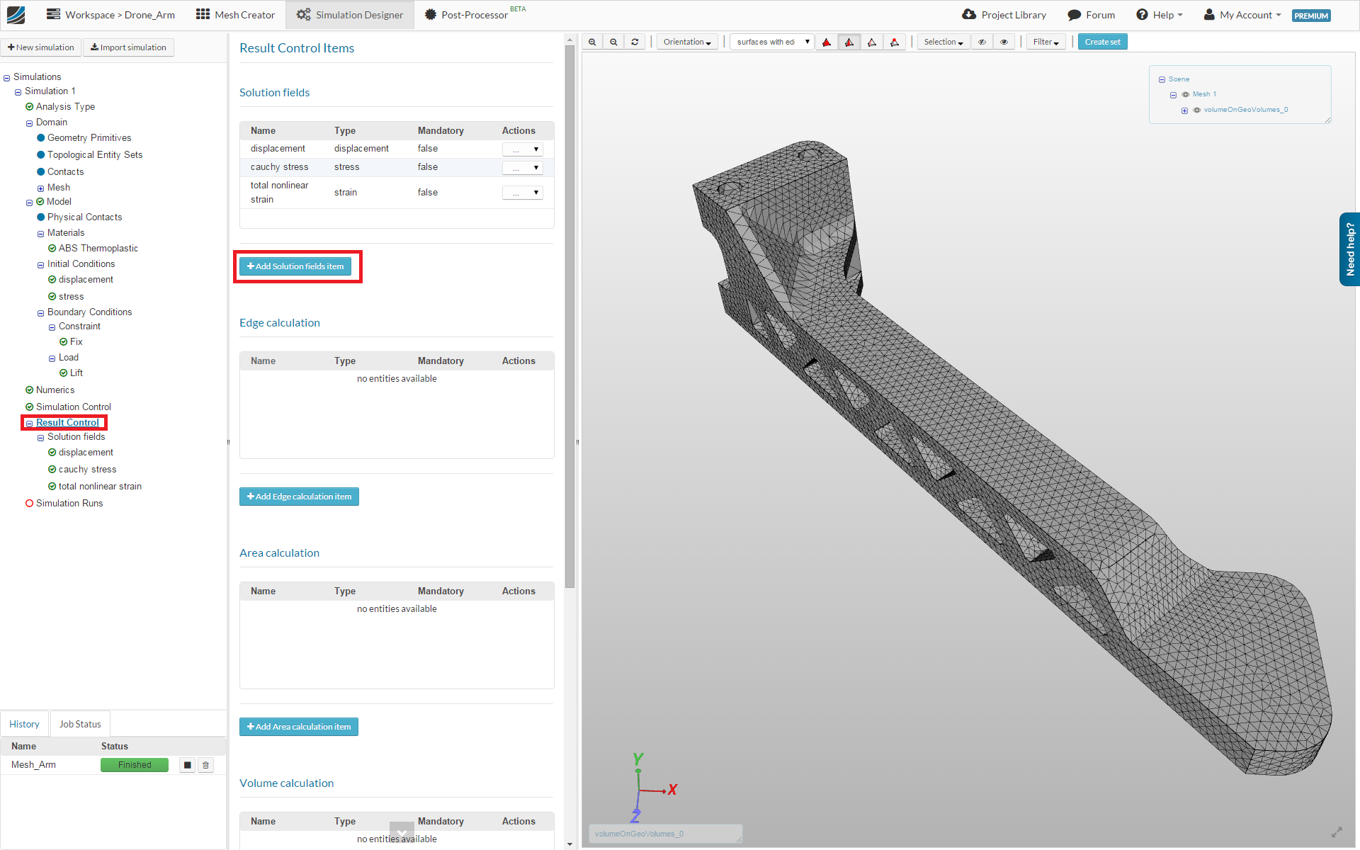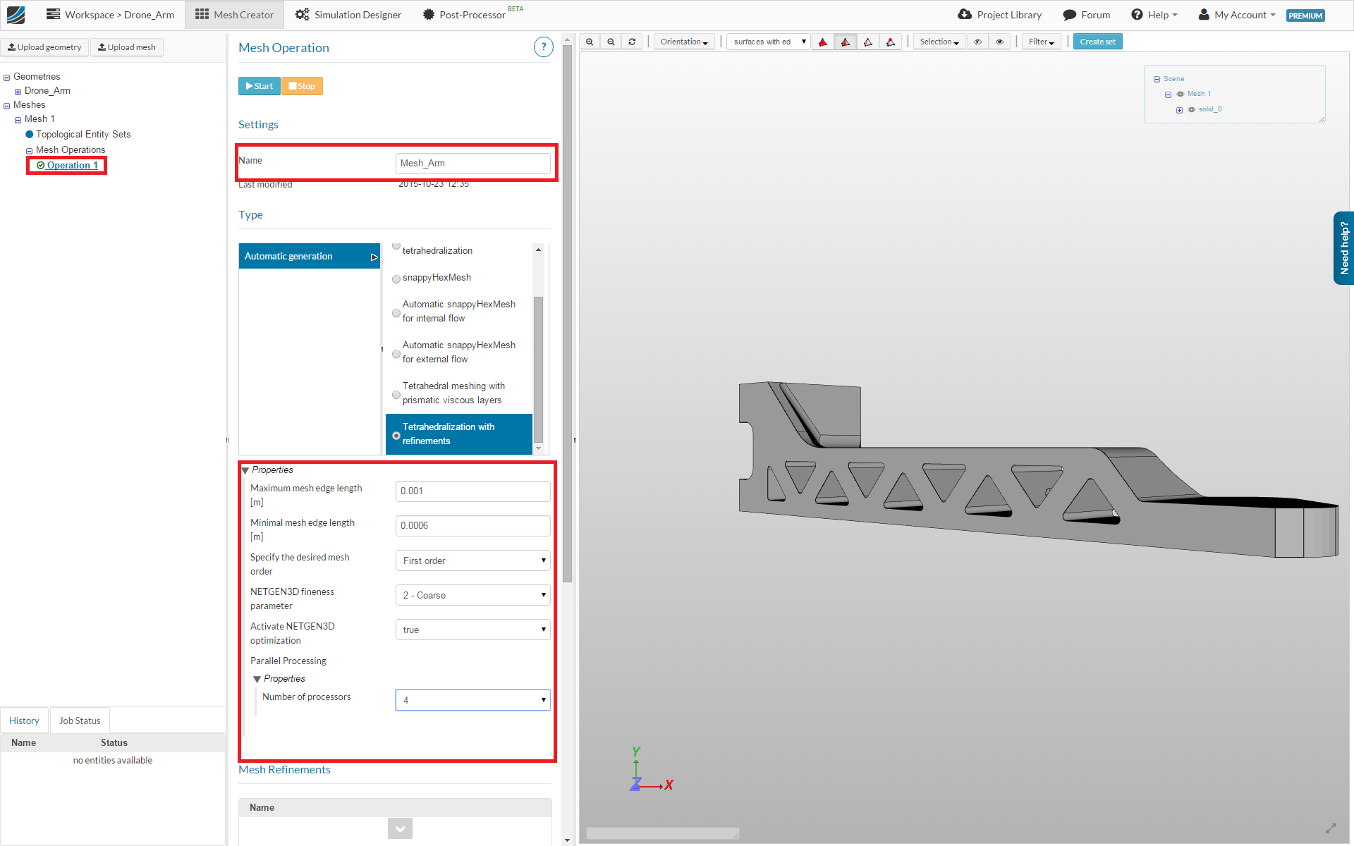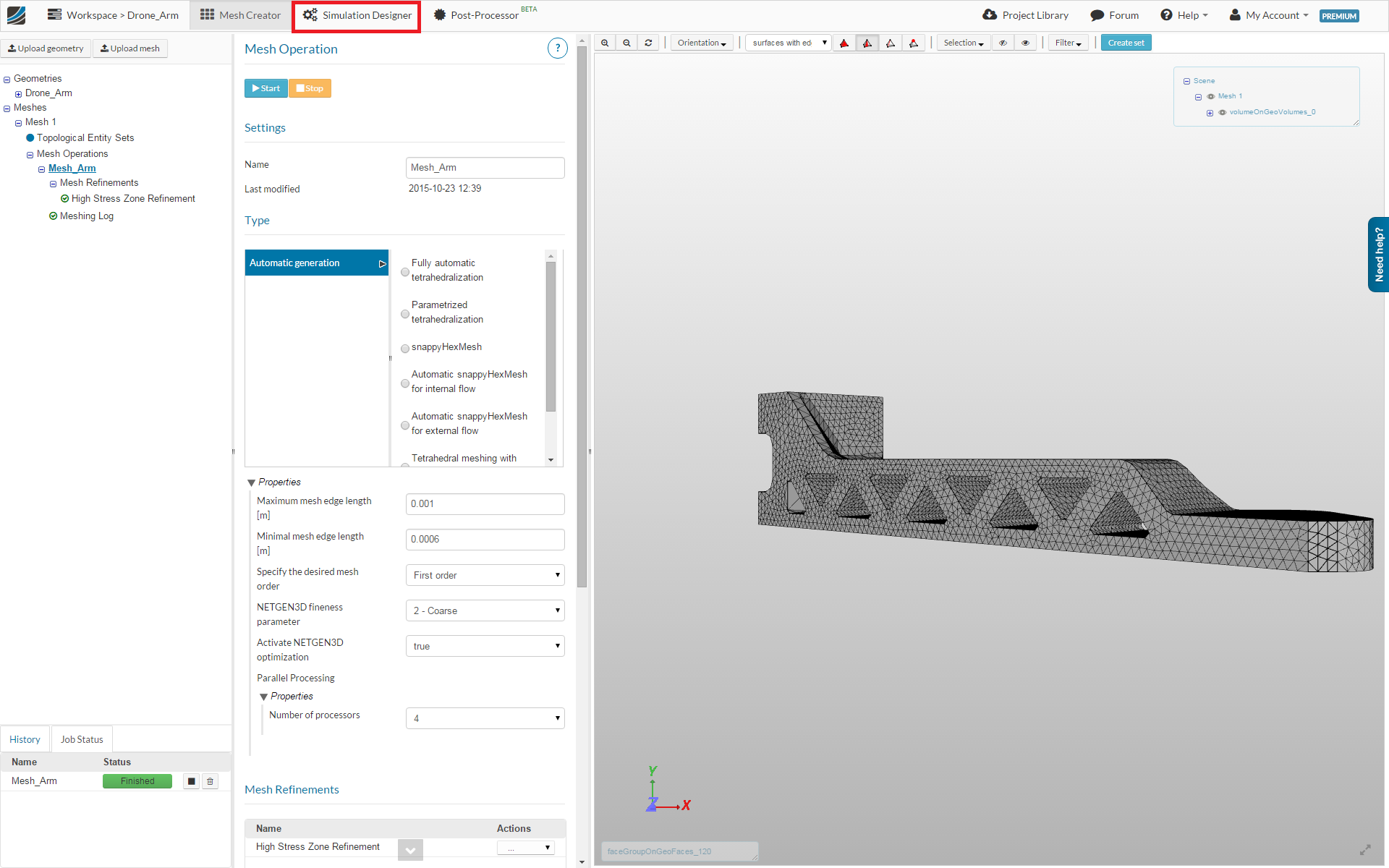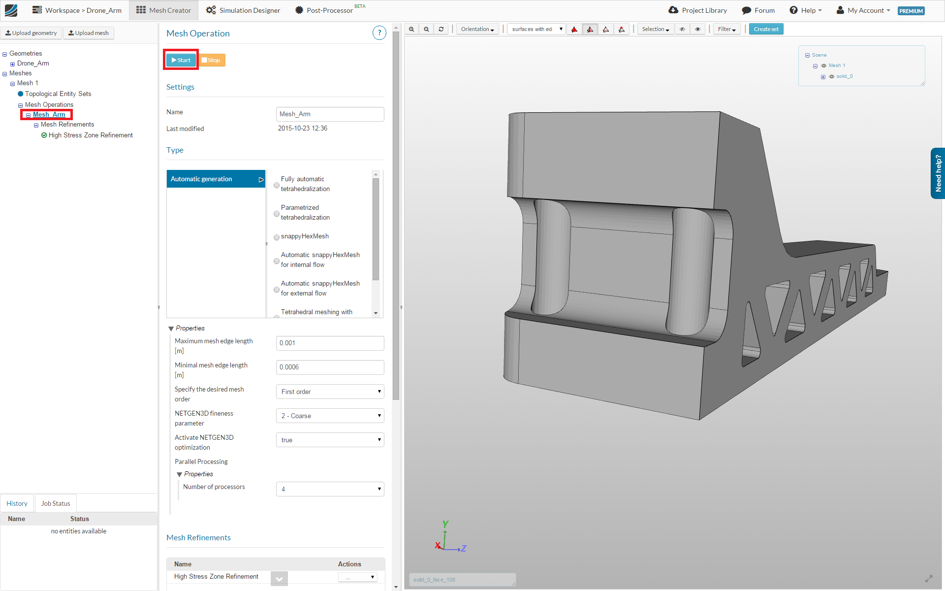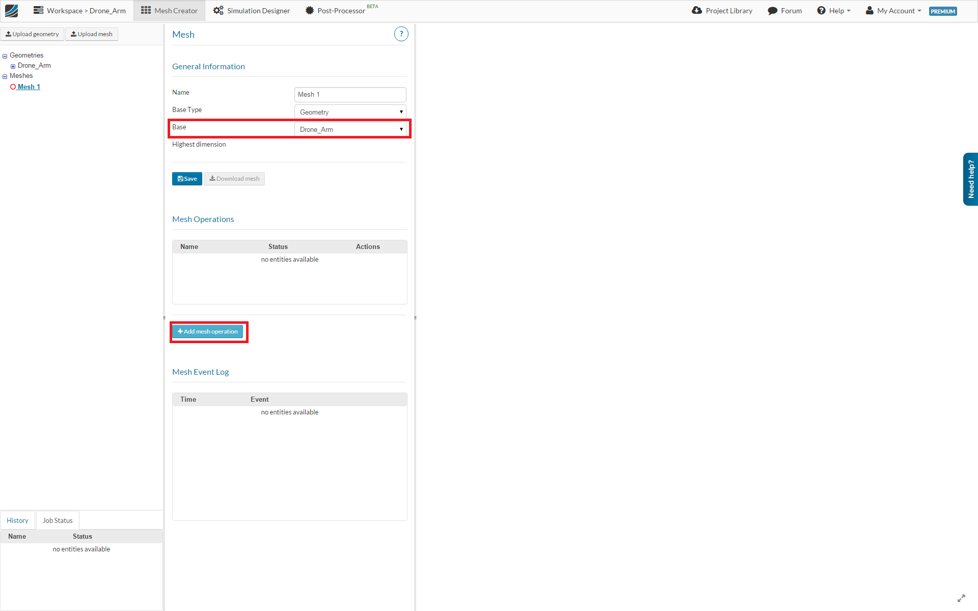 Klicke nun auf den Add mesh operation Button um die im vorherigen Schritt ausgewählte Geometrie zu vernetzen.