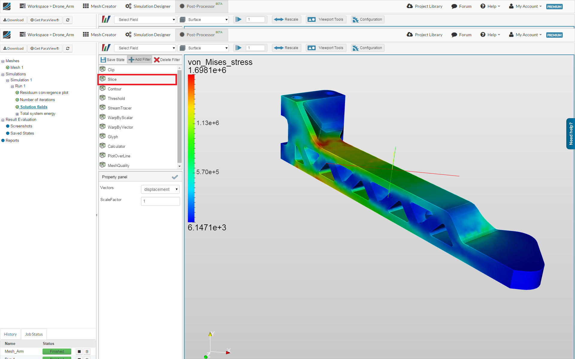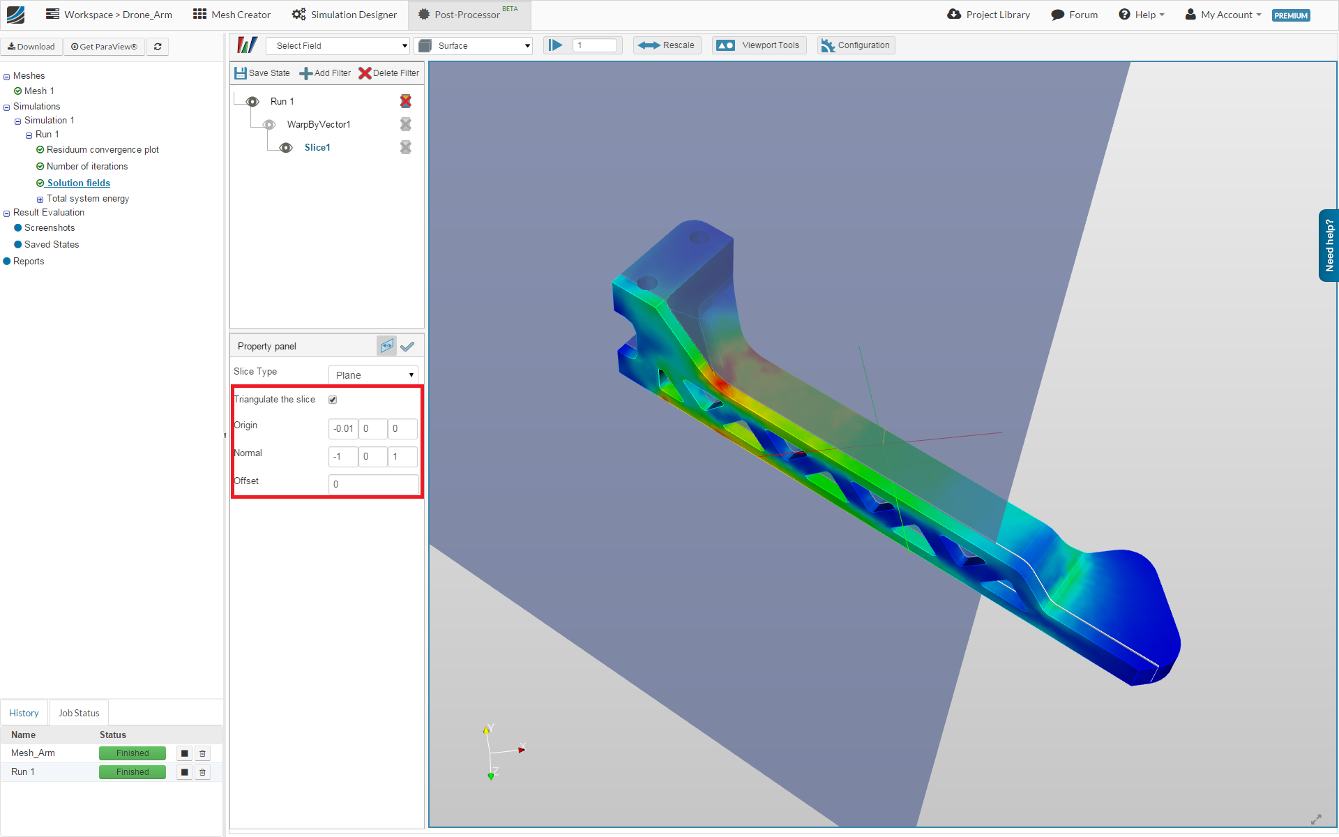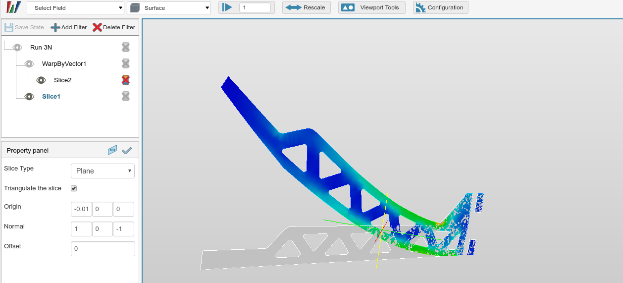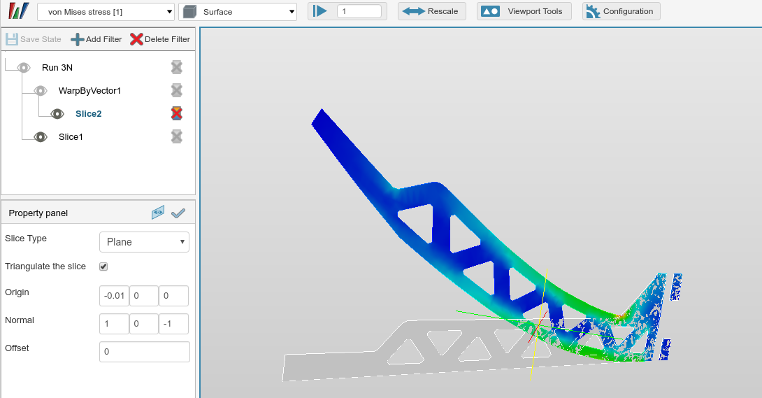 Abschließend wollen wir einen Blick in das Bauteil hinein werfen. Erstelle hierzu bitte einen Slice Filter.