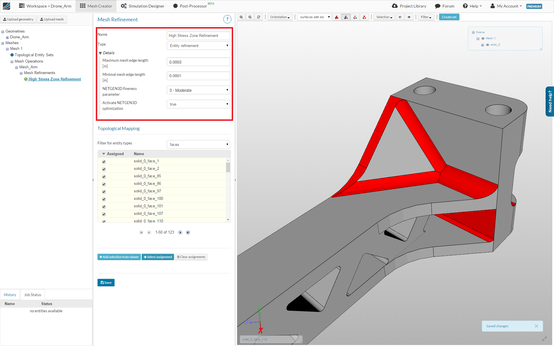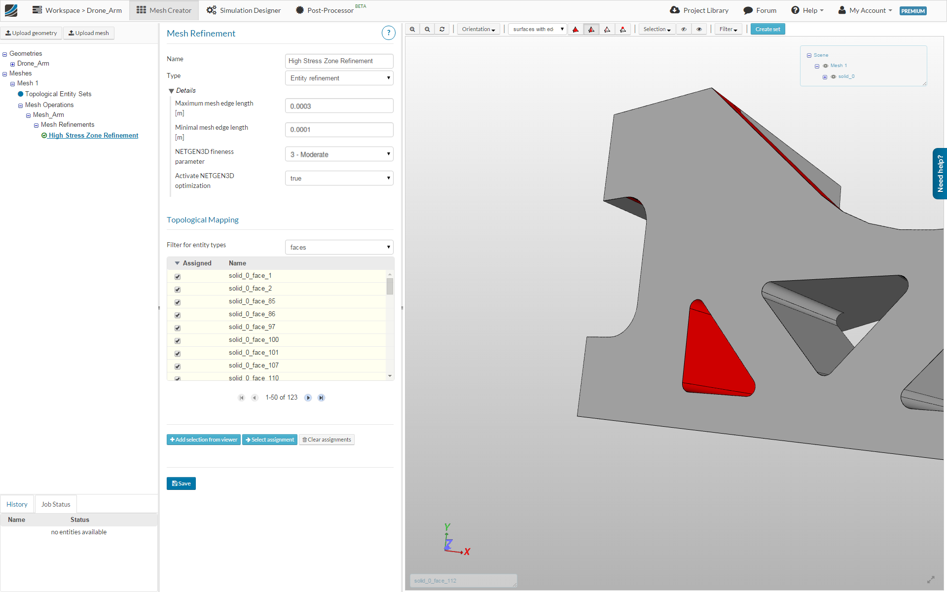 Klicke auf den Add mesh refinement* Button. Dieser wird ein neues Sub-Element zu dem *Project-Tree hinzufügen. Hier kannst du nun die Art der Verfeinerung spezifizieren.