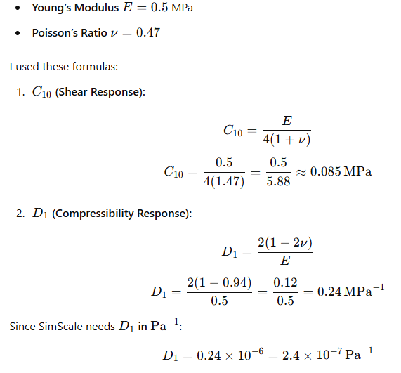 After sending this I realized I used an Young’s Modules of 0.5 when it should have been 0.96 I will test and see if that works and let you know.