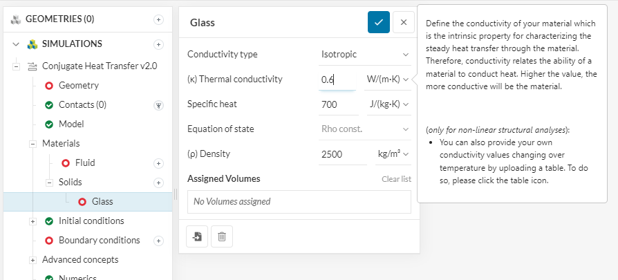 In this tutorial Thermal Management Tutorial: Electronics Box Cooling | SimScale it shows how to assign materials with various heat/mass/thermal properties and I had a quick look to see if you can amend the properties and it appears you can, as per the numerical areas seem to be able to be alerted.