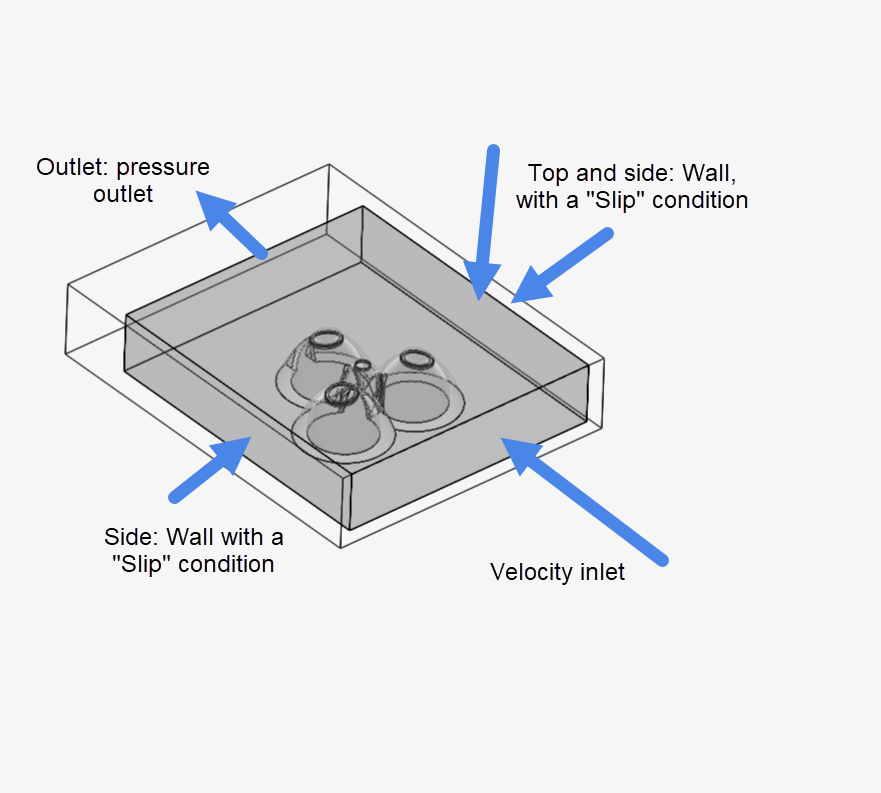 My project is a cluster of vernacular huts and I am studying the ventilation patterns in order to find optimal locations for inlets and outlets. I am currently using the convective heat transfer simulation to test this. I have set up an external flow volume through the software, but I am still having trouble fully understanding how this works ( so their might be error in that part). I modeled my design in rhino, and to keep my project as clean as possible, I Boolean differenced my project into a solid block in order for simscale to process my project as one whole solid.