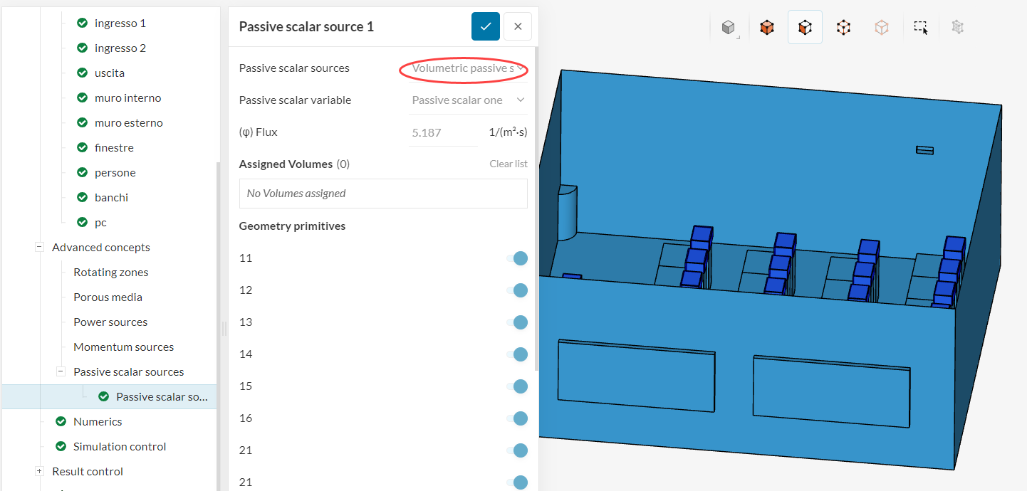 Infinte I entered as “Passive scalar source” the children’s co2 generation. I read several articles about “flux” then I entered as unit 0.007371 g/s.