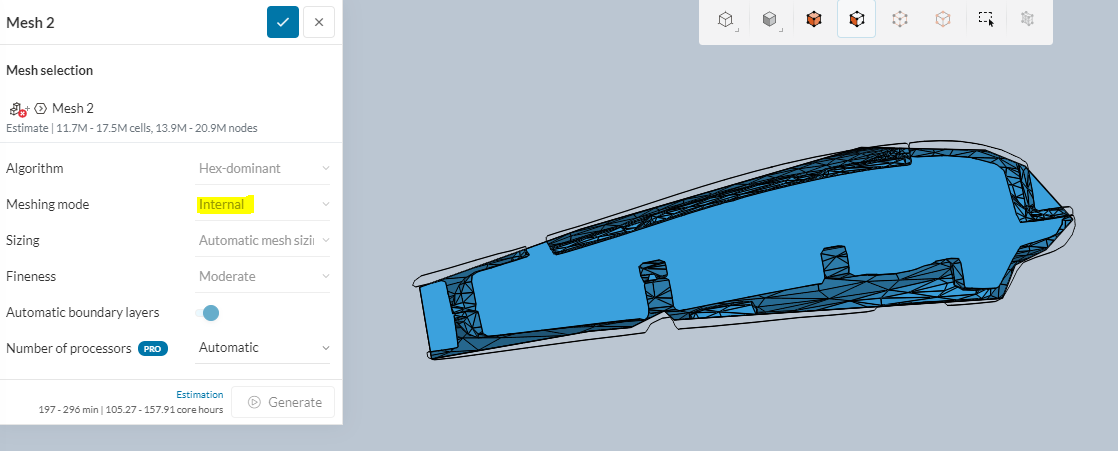 When you change mesh settings for any reason, Simscale gives you a new estimate. This estimate would be way to much for what you need but i find that the estimation seems to be over exaggerated. Always start with a coarse mesh and refine higher based on what you need, so shoot for 1-2 million cells at first with external and post the results.