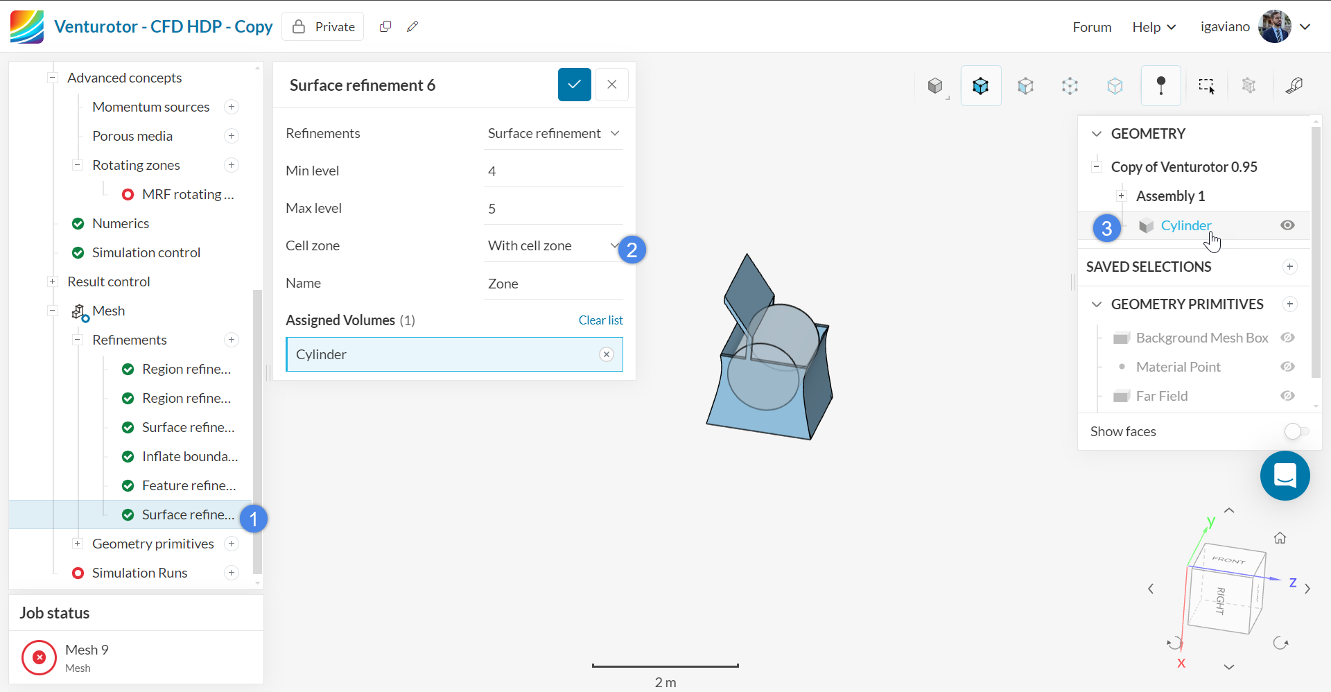 But, I don’t know how I should properly refine it and this error pop up is confusing me whether my meshing failed or not. Because in Flow3D, I refined strictly by cell sizes of my bigger and smaller mesh blocks only, I’m not sure if this is also possible in SimScale as it seems like I need to refine other things.