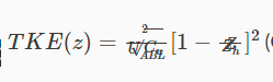 Turbulent Kinetic Energy (TKE) can be similarly defined using a similar relation TKE(z) = \frac{U_{ABL}^2}{\sqrt{C_u}}[1 - \frac{Z}{Z_h}]^2 (Giorgio Crasto, 2007), where C_u is a model constant (0.09) and Z_h is the boundary layers height (usually defined at 99% U_{freestream} ).