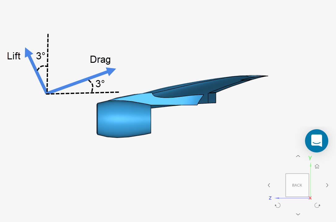 As such, given the orientation of the wing, here is how the set up would look like for this configuration (see the orientation cube in the image above):