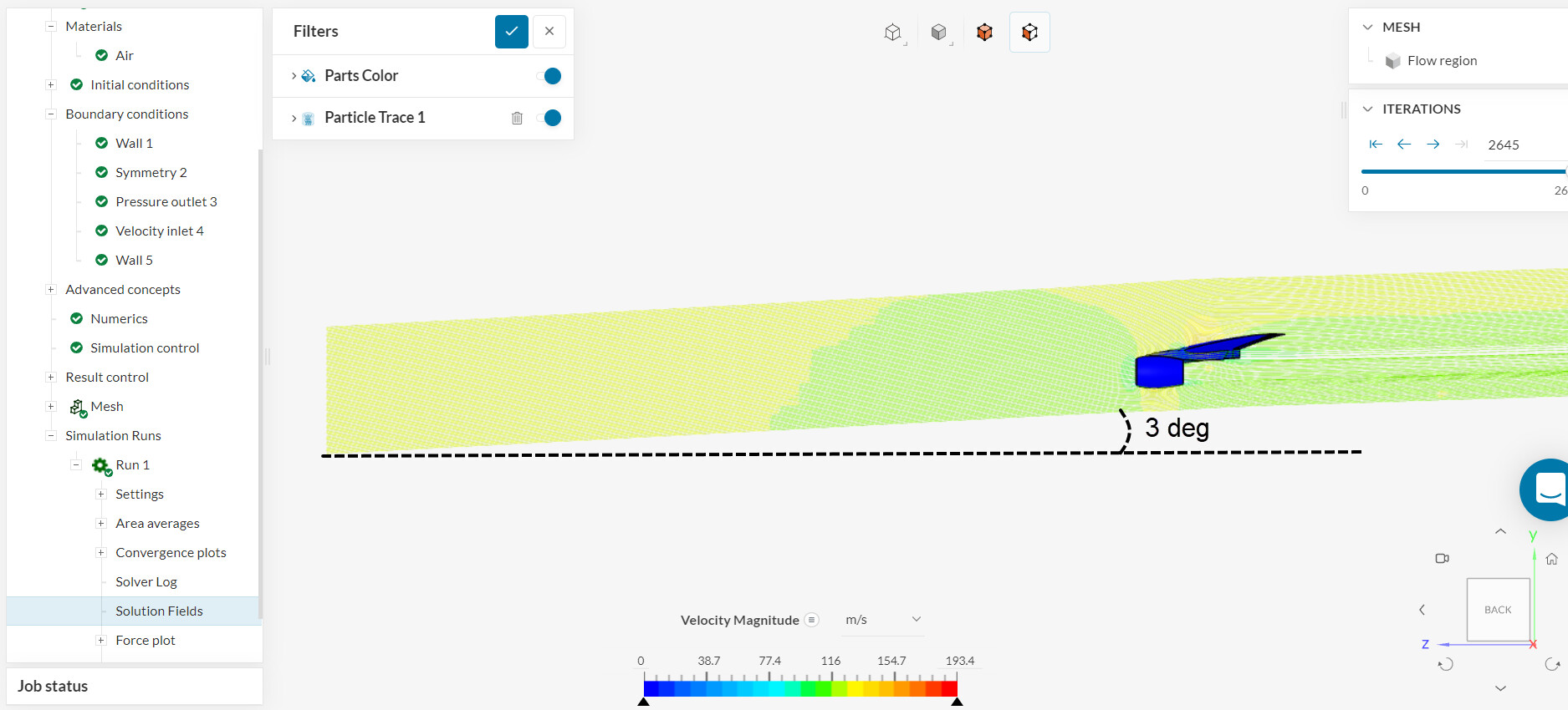 Let’s take the Compressible Flow Simulation Around a Wing tutorial as an example. In this project, the simulation consists of an external aerodynamic study with an angle of attack of 3 degrees: