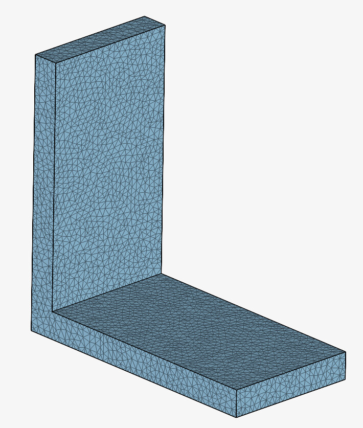 It can be seen that the thickness of the plate is 10 mm, and we specified a mesh sizing (equal maximum and minimum) of 2.5 mm. Here is the result (‘Base Mesh’ in the project):