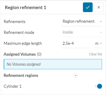 As our base mesh length is 2.5 mm, we specify a refinement of 0.25 mm: