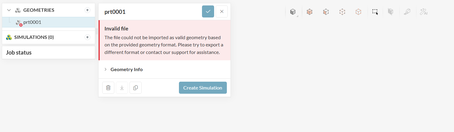 I add a simple model but failed,the file former is .prt or .xt,i create a new counter and use an another computer,the result is the same,how can i solve the problem
