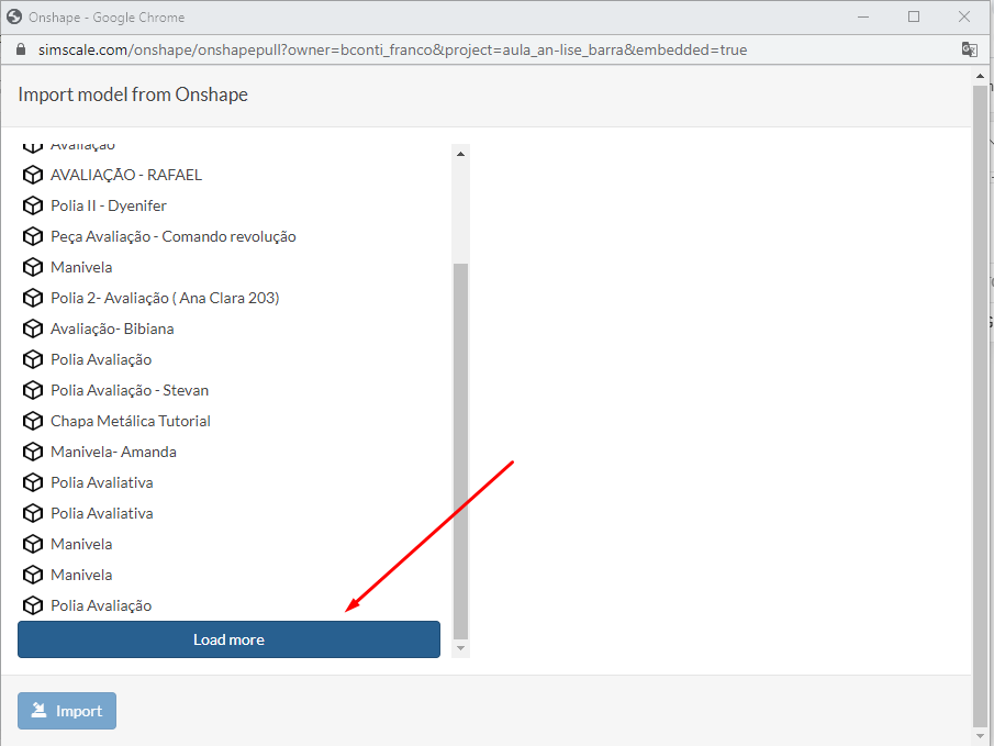 I need select a file name in onshape for import for simscale structural analysis. I not find tool for search file name in import frame, view at the image attached: