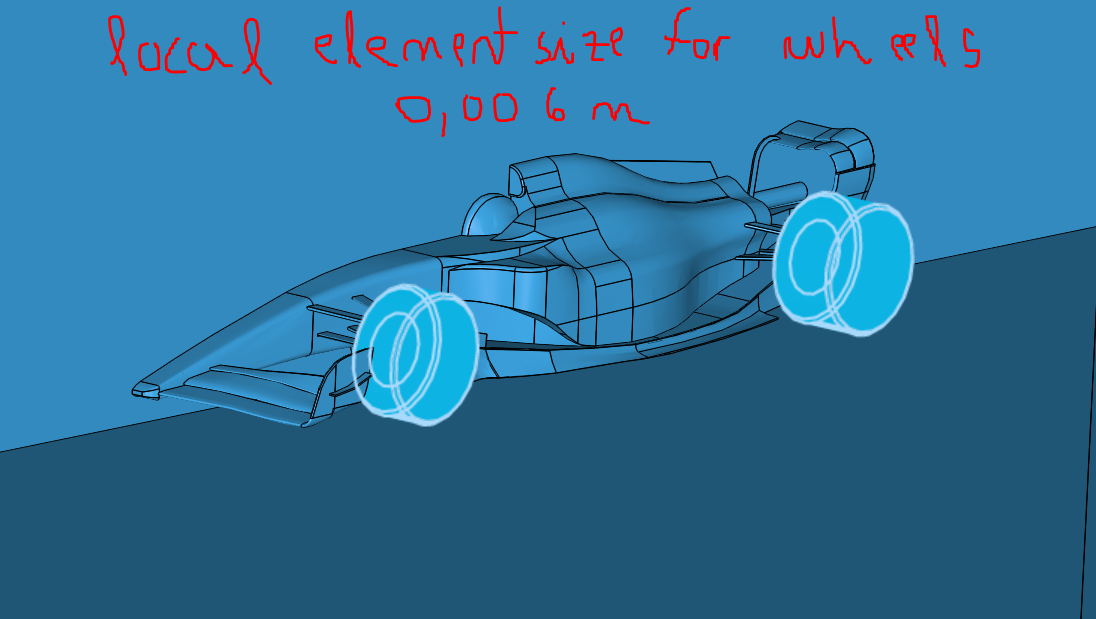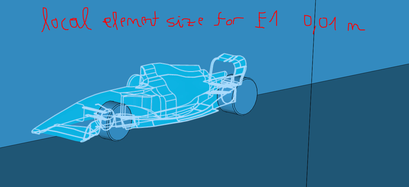 The car is approximately 5 m long and 2 m wide, until I have set all the parameters I am performing the simulations with one side of the car and symmetry wall function on that wall.
