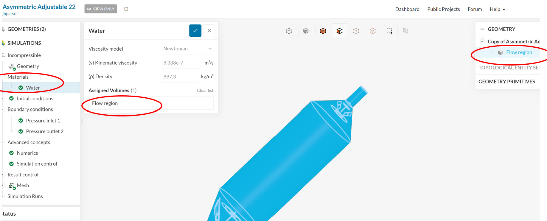 I see the project has a successful simulation and the Flow Volume in the Materials area has been selected.