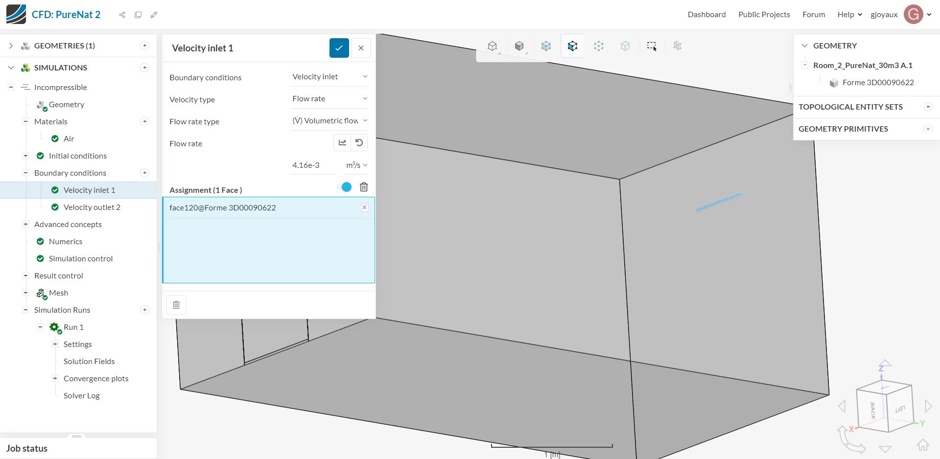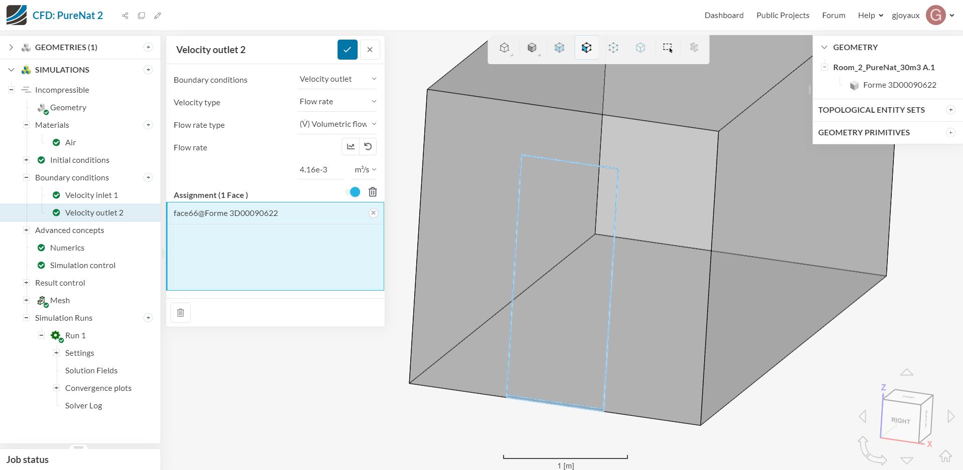 I am starting on simscale and after having followed the various tutorials I decided to launch into the CFD simulation by modeling a simple part of 30 m ^ 3 with an air inlet from windows and an air outlet from below and door outline.