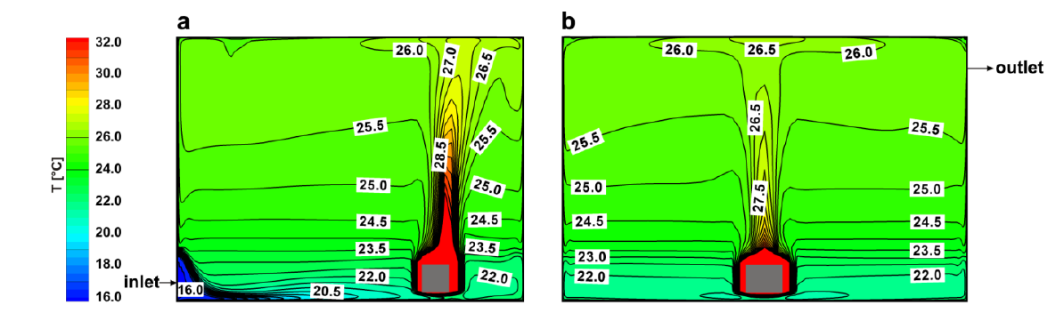 The heat source with dimensions width Ă— length Ă— height = 0.3 Ă— 0.4 Ă— 0.3 m3 was placed 0.1 m above the floor level and 2.7 m from the inlet (Figure 1).