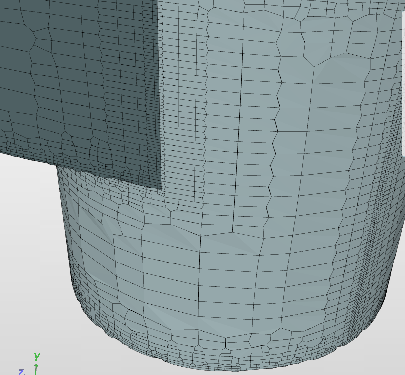 So, i have been playing with the Hex-Dominant parametric Meshing in order to create refinement regions so I use fine cells only in the regions I need in hopes of less computational time and size. But before I get into that I have been trying to get a rough mesh going. However, I seem unable to get the mesh to map around the part on the edges for some reason. I tried a feature refinement and it made some improvement but I still get the pattern shown below. I rather not increase the number of cells in the bounding box discretization because that sort of makes the the whole meshing regions pointless if the whole piece is finely meshed. Is there any way to fix it? I tried changing the scale of snap control tolerance and I also played a little bit with the minVol but I am still unable to get it right. I would appreciate any suggestions you have.