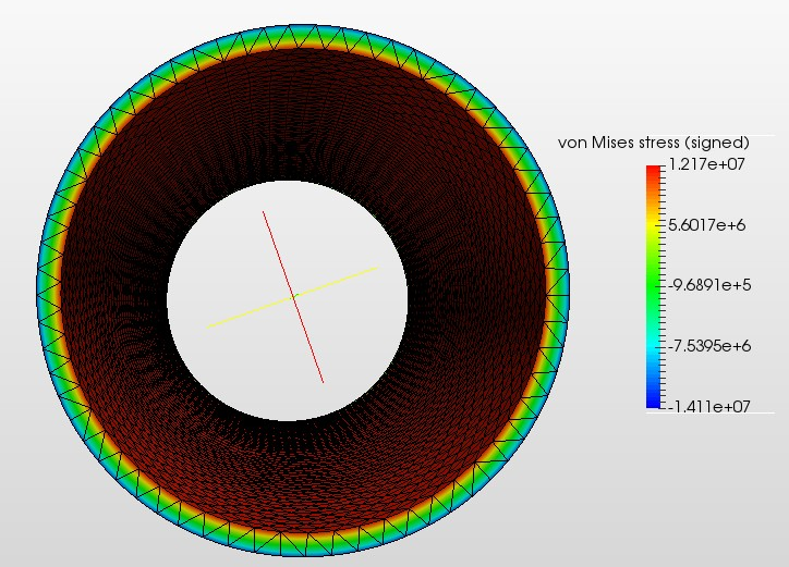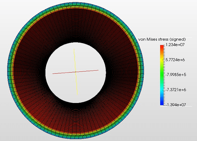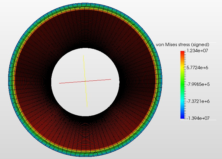 To confirm the functionality of SimScale, I ran a thermostructural simulation (advanced, steady-state, static, linear) of a tube’s temperature being increased from 100C (material reference temperature of 100C) to 700C with a radial temperature gradient decreasing from the outside to the inside (from heat flow towards the inside). I got a result of the tube being entirely in tension, that is, there is no negative von mises stresses or negative strain on the outer surface. If a tube has a radial temperature gradient decreasing from the outside to the inside, the outer surface of the tube wall is in compression and the inner surface is in tension (for reference, see #16 in section 16.6 of Roark’s Formulas for Stress and Strain). Why did I get a result of the tube being entirely in tension?