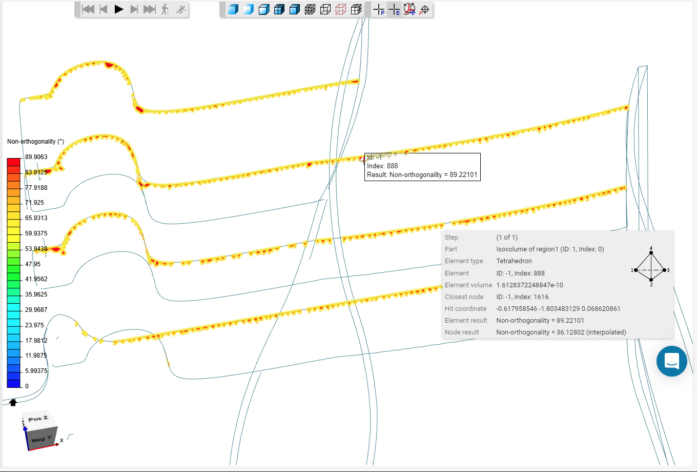 Firstly, mesh quality tool will take some time to display any parameter since the current mesh configuration consists of 22 million cells. I would recommend you to create iso-volumes in the meshing tool by setting high limits for aspect ratio and non-orthogonality (for non-orthogonality let’s say a value between 88 to 89) and inspect the bad quality cells.