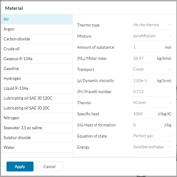 Additionally, I wasn’t able to attach the material that should be used (aluminium) since I merely had the choice of fluids (gases) and there was neither the option to change the parameters nor the access to another tab or button to choose from another data base or something.