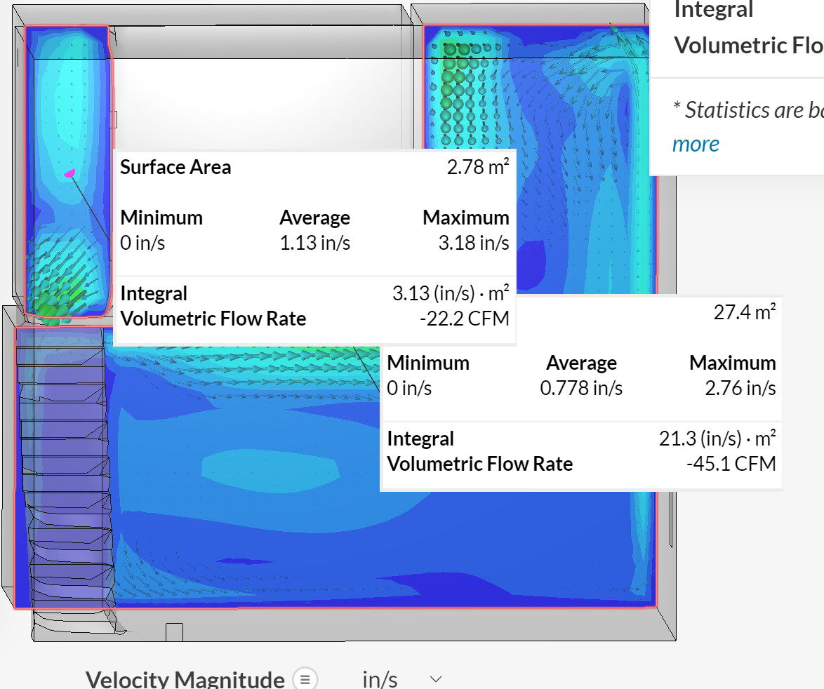 - After performing the simulation, go to the Post-processor, create a cutting plane over the doorway and use the bulk calculator to compute the flow rate.