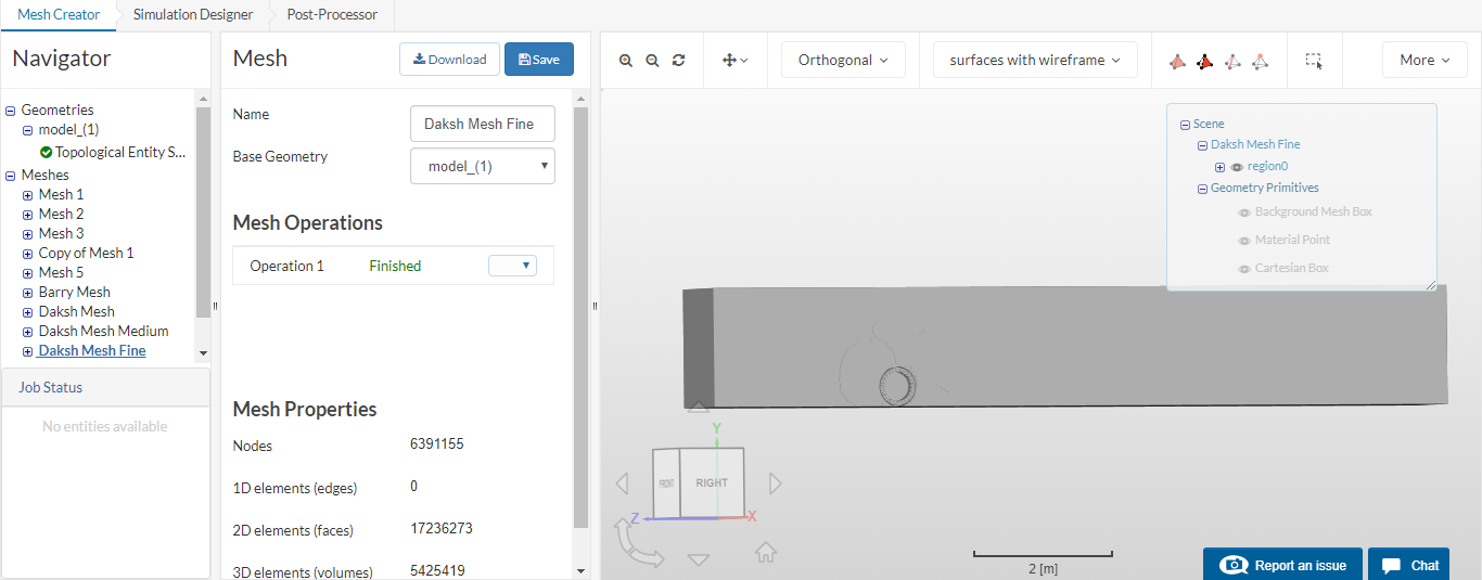 However, regarding the mesh clip you should note that if the mesh has a lot of nodes the mesh clip may not work. A good way to check your mesh then would be to simulate it for a very short time step like 0.01s just to get 1 data set out and open it in paraview where you can select “surfaces with edges” and observe the mesh at any point.