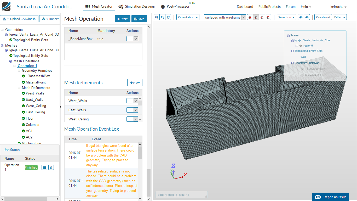 2 . After all the meshes refinements, started “Operation 1” went through Ok. But Cartesian Box end up in a different shape of my geometry;