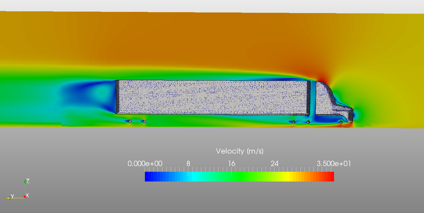 but overall I think your setup is correct. The domain might be a bit small to sides and the top of the truck, especially to the sides I’d expect an interaction of the solution fields with the side walls, so to get better result I’d make this larger.