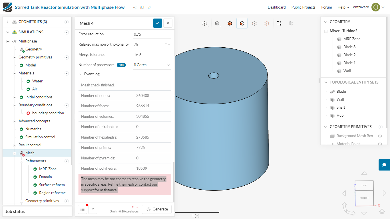 One of the issues is that you don’t have generated the fluid volume yet. as you can see in the reference project. You should only have two volumes. The MRF zone and the fluid volume.