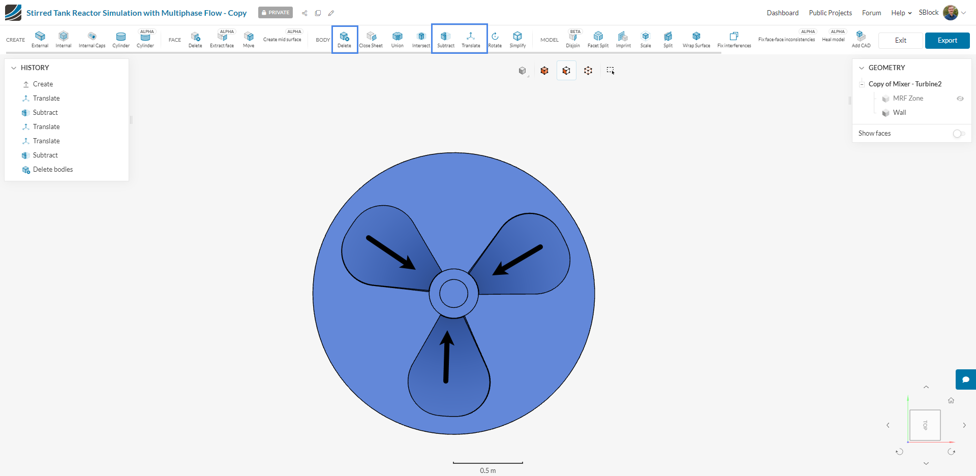 Last I used the delete tool to remove the blades as they are not needed.