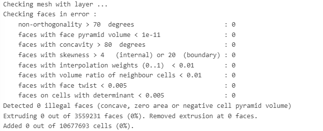 Upon going through the meshing log, I find all faces to be legal i.e. not error in orthogonality, skewness etc. But during final balancing, there seems to be an error occurrence saying “one process returned non-zero exit code”.