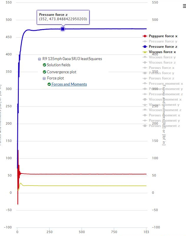 Here is the sim run results for run ‘R9 135mph 0aoa SRJ3 leastSquares’ (stable to less than +/- 0.5% after 300s):