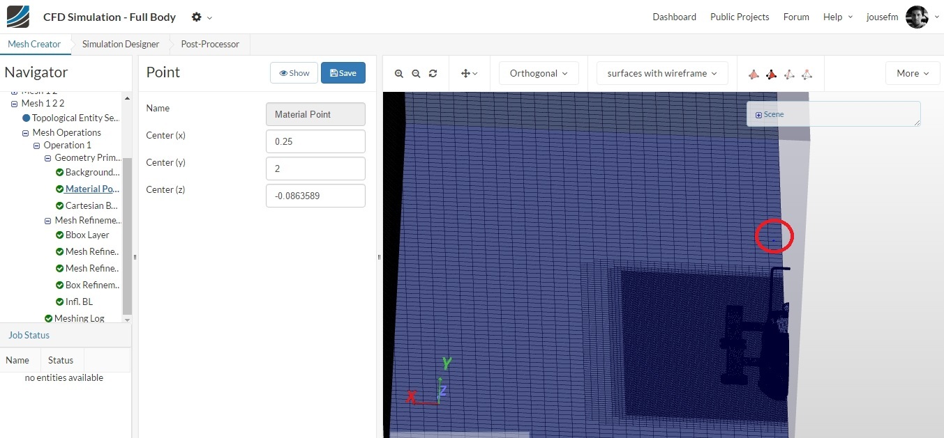 just set up your Background Mesh Box in a way that it “cuts” your model in halves and pay attention that the material point is at the right place.