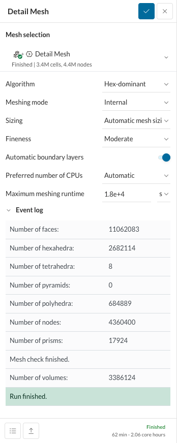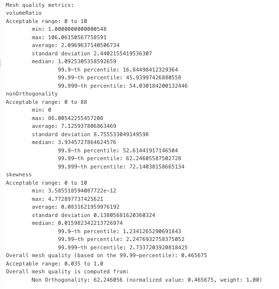 I am a high schooler and relatively new to SimScale and I am trying to run a compressible CFD simulation to measure the effects of different types of winglets on wake turbulence. I am right now focused on running a simulation for a base wing with no winglet however the simulation is constantly unsuccessful. I used an external flow volume over the wing geometry and deleted the wing geometry afterwards as per tutorial on the SimScale website. Afterwards I started a new compressible simulation using the LES Spalart Allmaras as my research professor suggested. My goal is to simulate a base wing model at cruise conditions, 35000 feet at 250 meters per second. My numerics is the default numerics that comes with the SimScale compressible simulation except for the number of non-orthogonal correctors which is set to 4 after some help with the SimScale AI agent. I have tried 9 other simulations similar to these settings however they all ended up diverging. I found out out the meshing had a 110 volume ratio. I tried fixing this mesh by regenerating mesh but I don’t know how to decrease the volume ratio whilst keep the other aspects (non-orthogonality and skewness) within the acceptable limit.