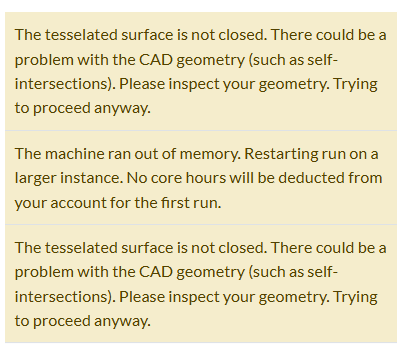 Also, I decided to use hex mesh because upon seeing the SimScale tutorial for compressible wing simulation, it recommended using the hex dominant meshes. Additionally, when trying to run a standard mesh generation, the meshing fails due to memory issues and facetted geometry even though I unchecked the box that says “Optimize for LBM/PWC”. I have attached the error message for the standard meshing below. Is there a way to fix this issue?