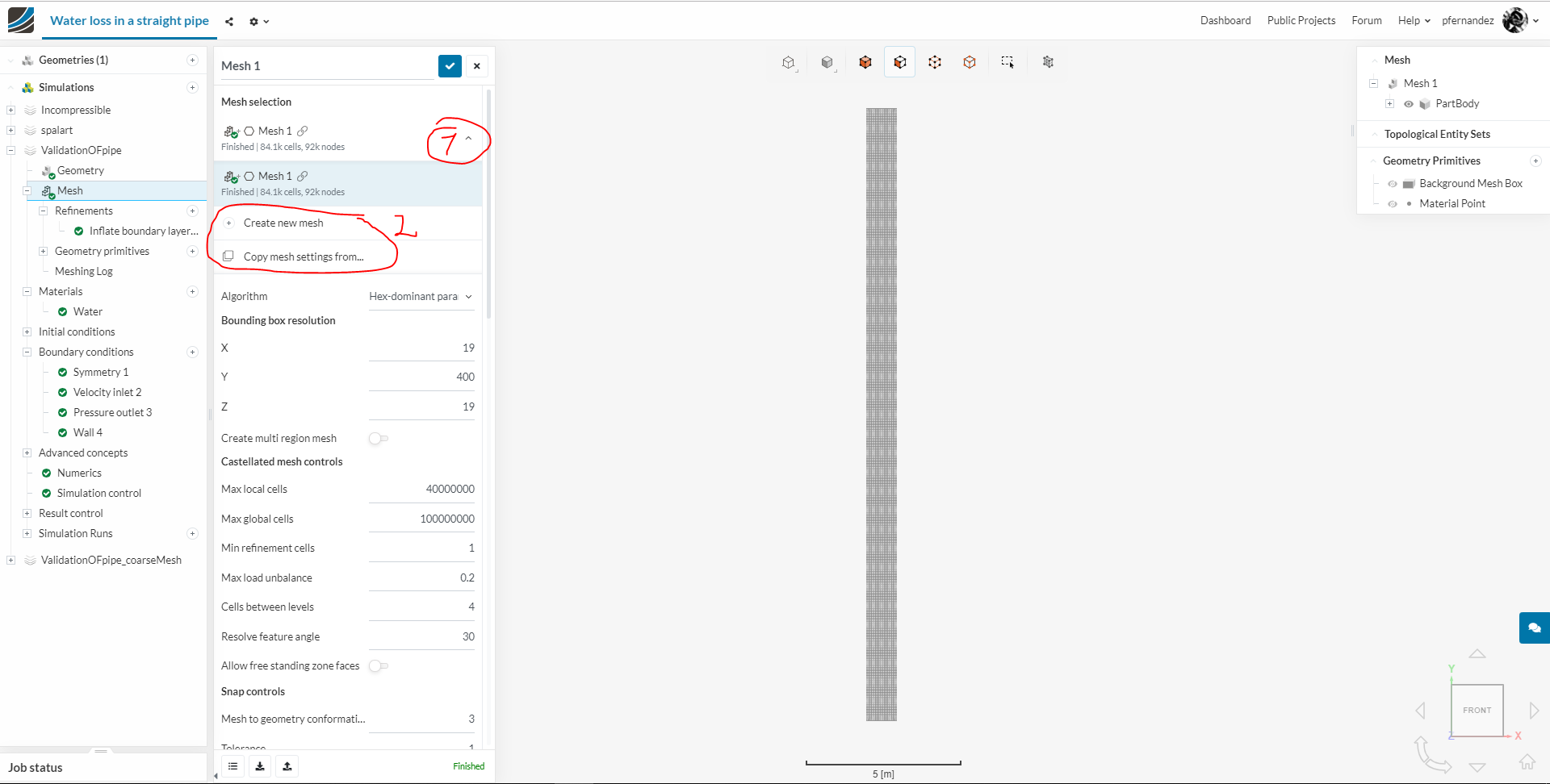 @jousefm, Her issues with the mesh are not when copying a project from another user, but when duplicating a Simulation within her project. On that duplicated simulation she wants to create a different mesh from the same geometry but with different resolution; though she might be overwriting the one mesh she has instead of creating a new one. This of course would affect her other simulations within the project, and that’s not what she intends. At least that’s what I understand. If that’s the case @andrea_perez, you have to create a new mesh.