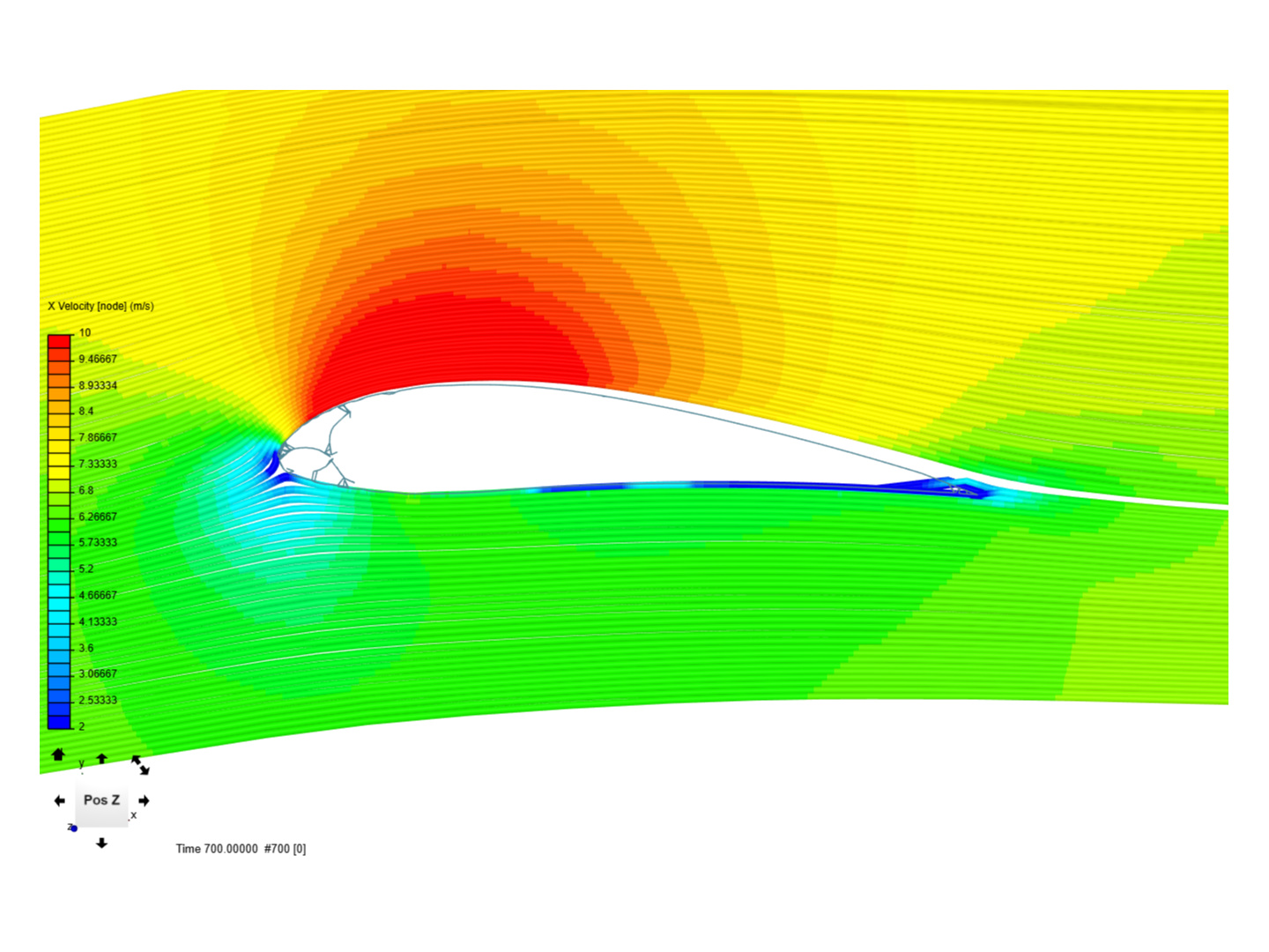 Below are 2 images of the same profile wing in 7m/s 7deg AoA, One is 2m long, the other is 8m long.
