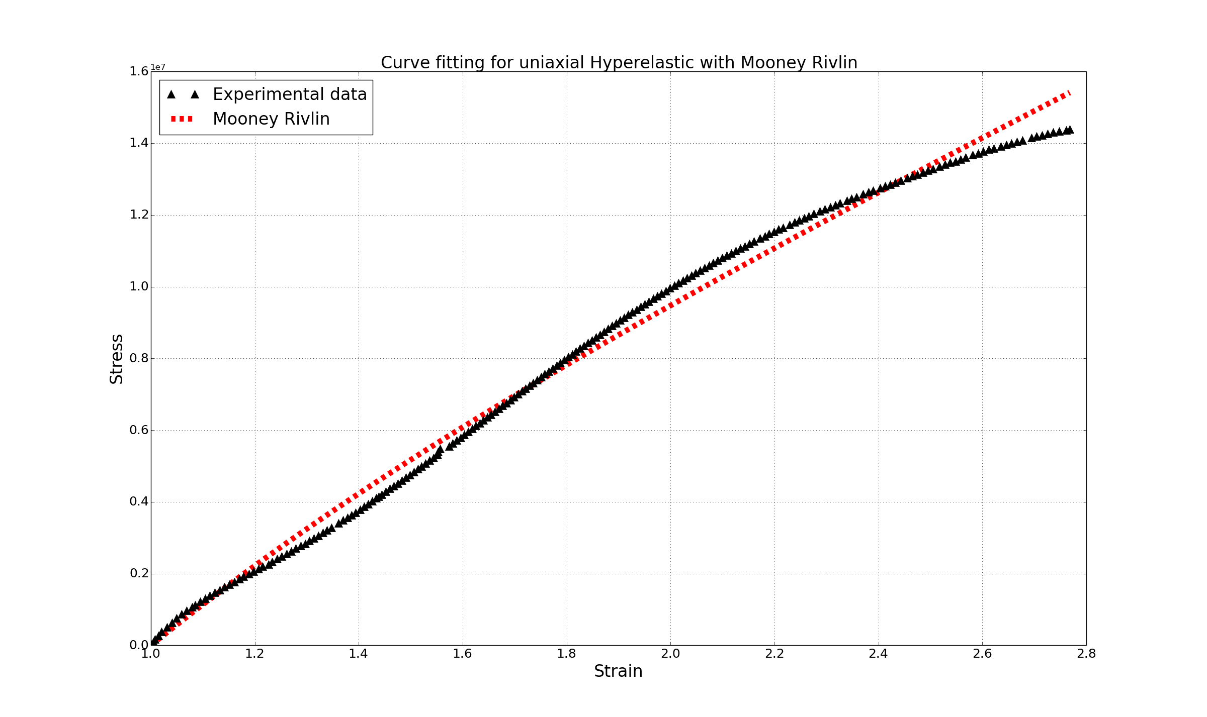 Hi every one , I have tried to solve hyper elastic problem , But i don’t know how to find Mooney revlin constants , and bulk modulus but i have uni axial tensile data for rubber material .