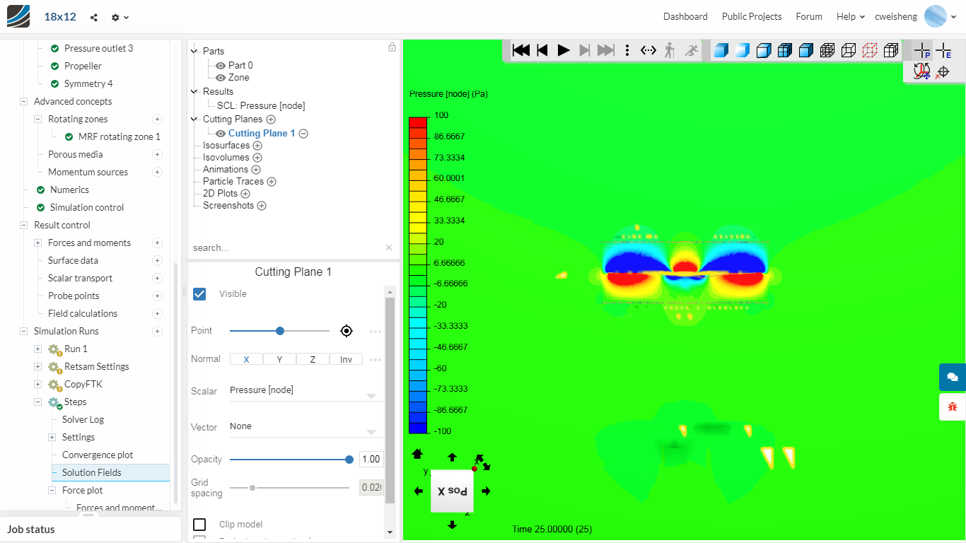 Now, when MRF starts to work, you will notice very soon the pressure, velocity, k, etc. on Surface data plot. If nothing happens, break it, just set another run, modifying one parameter at time.