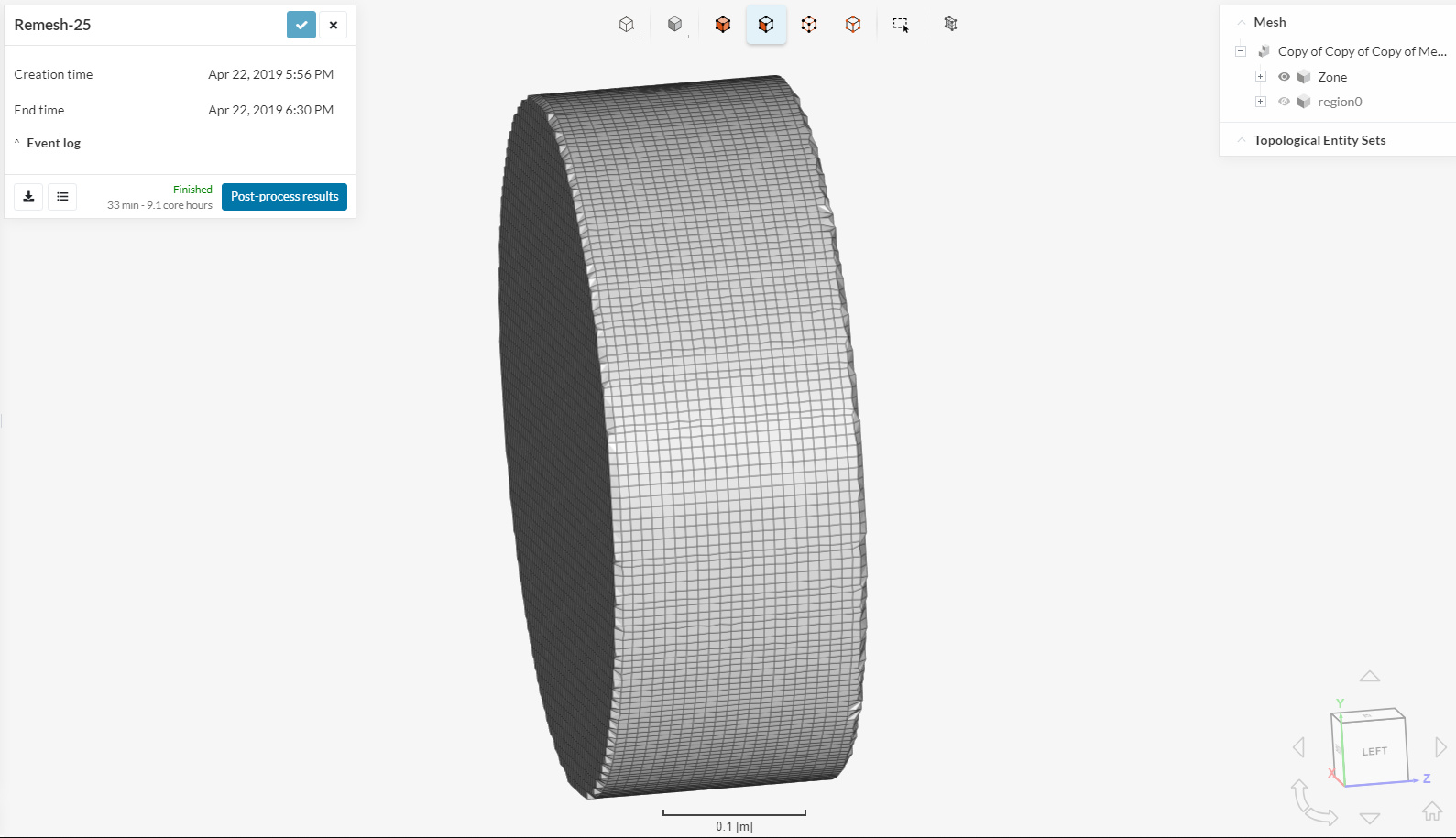 Also, if you have a look at the Zone mesh, you’ll see that the edges have not been properly captured. Add a feature refinement, in order to better capture the edges of the cylinder.