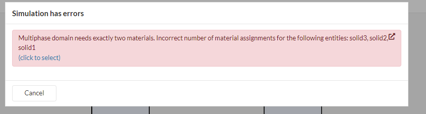 I want to make a simple multiphase simulation, where I have to chambers with air connected by a pipe with water in it. I assign air to the two top solids and water to the bottom solid. Simscale gives me an error saying I need to assign exactly two materials to the multiphase domain.