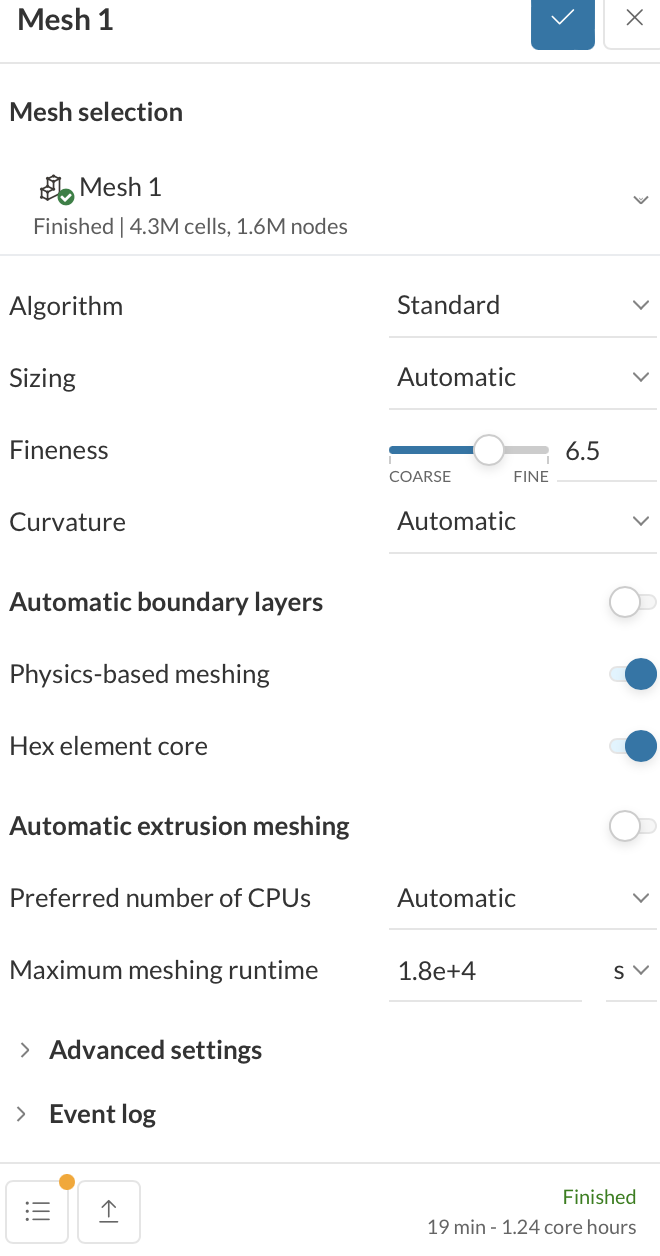 We’re trying to make an incompressible simulation for our F1 in Schools car and have successfully done so with multiple cars. For some reason the same settings are not working on this car. I’ve attached a screenshot of the solver log, mesh settings and numerics. Ideally there would be a fix that wouldn’t impact our coefficients because we’ve done quite a few runs with these settings now.