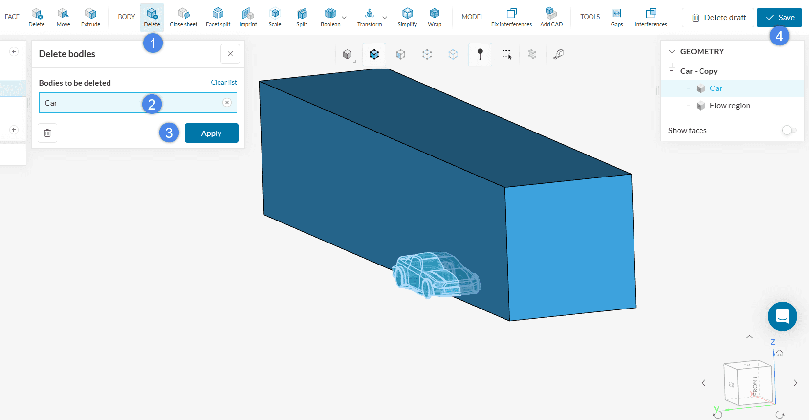The simulation domain for a fluid dynamics simulation is the region occupied by the fluid (gas or liquid). Generally, the CAD model does not specify this fluid region. The user should manually specify or extract the fluid region in a process known as the “Flow Volume Extraction”.