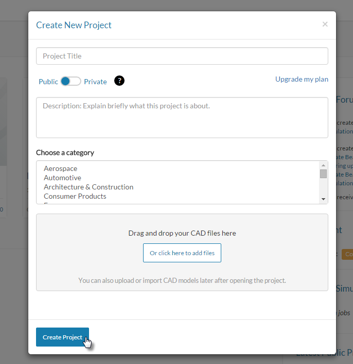 - Create a new project in SimScale