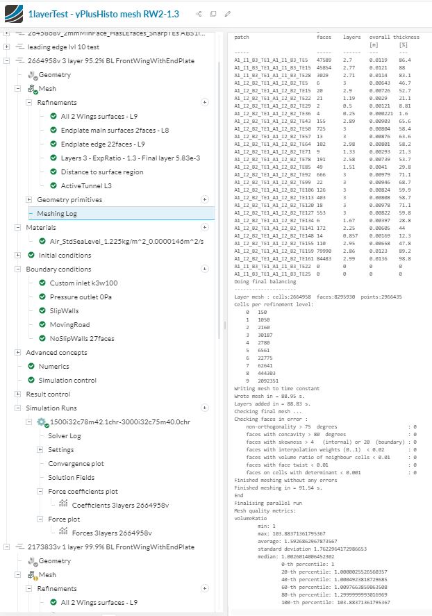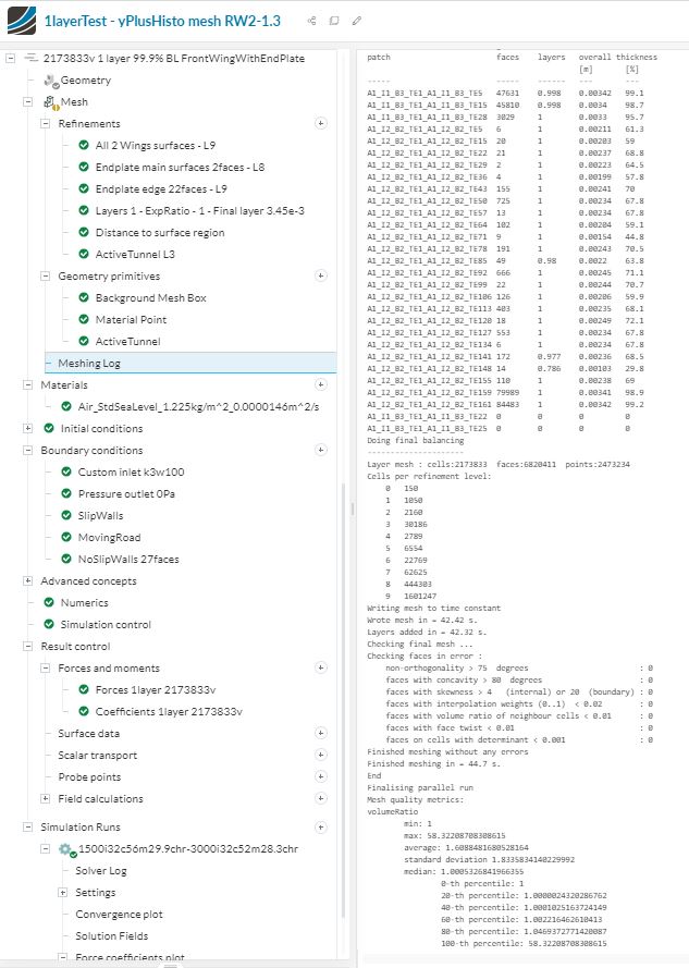 Here are the results, although i dont think this will be do - able because a half wing mesh is already at 6.6 million cells. I still have a whole car to mesh haha