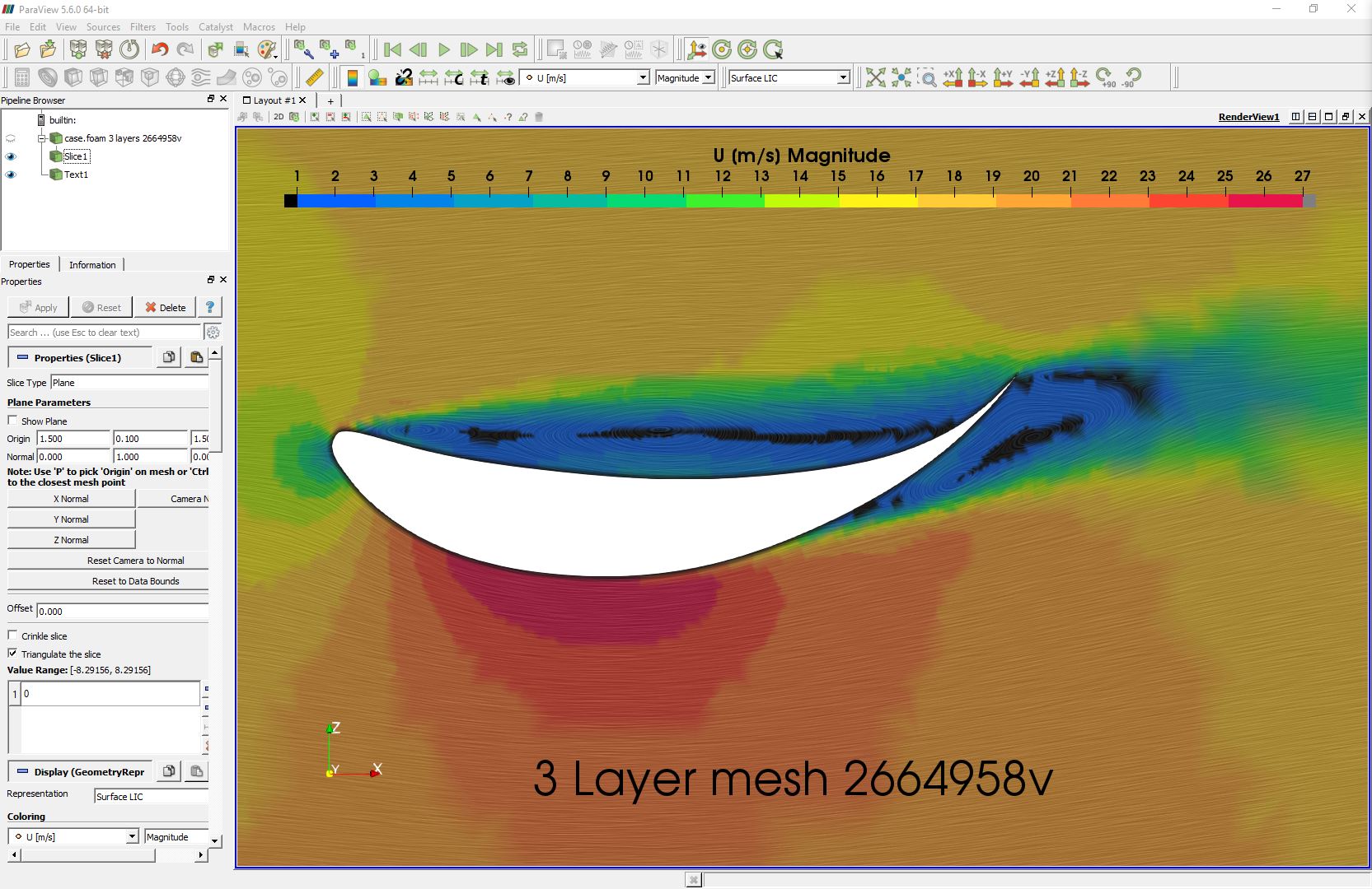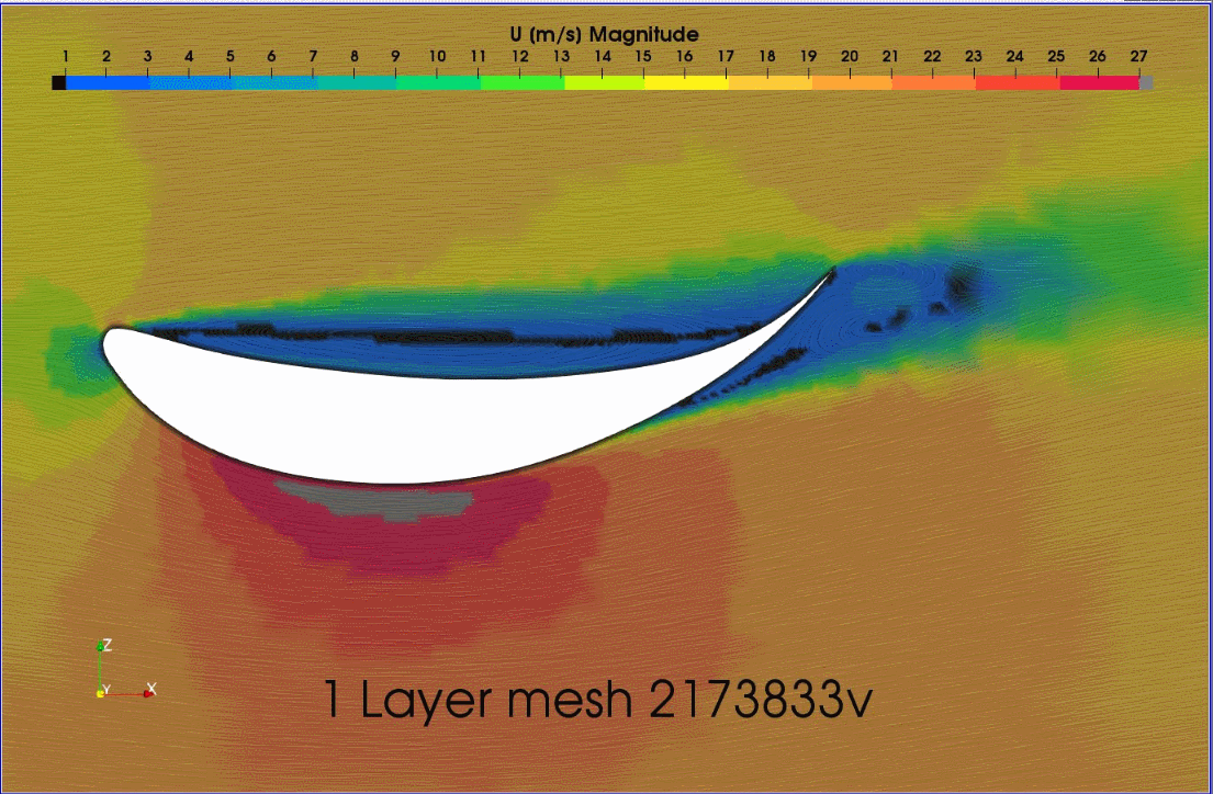 . This is really cool, you have to try it… Below are 2 images of the U magnitude ParaView plots of the results from each meshes sim run… Click on the bottom on and then use you Left and Right arrow keys to swicth between the two images… This is the only way to EASILY see the minor difference between these U magnitude plots